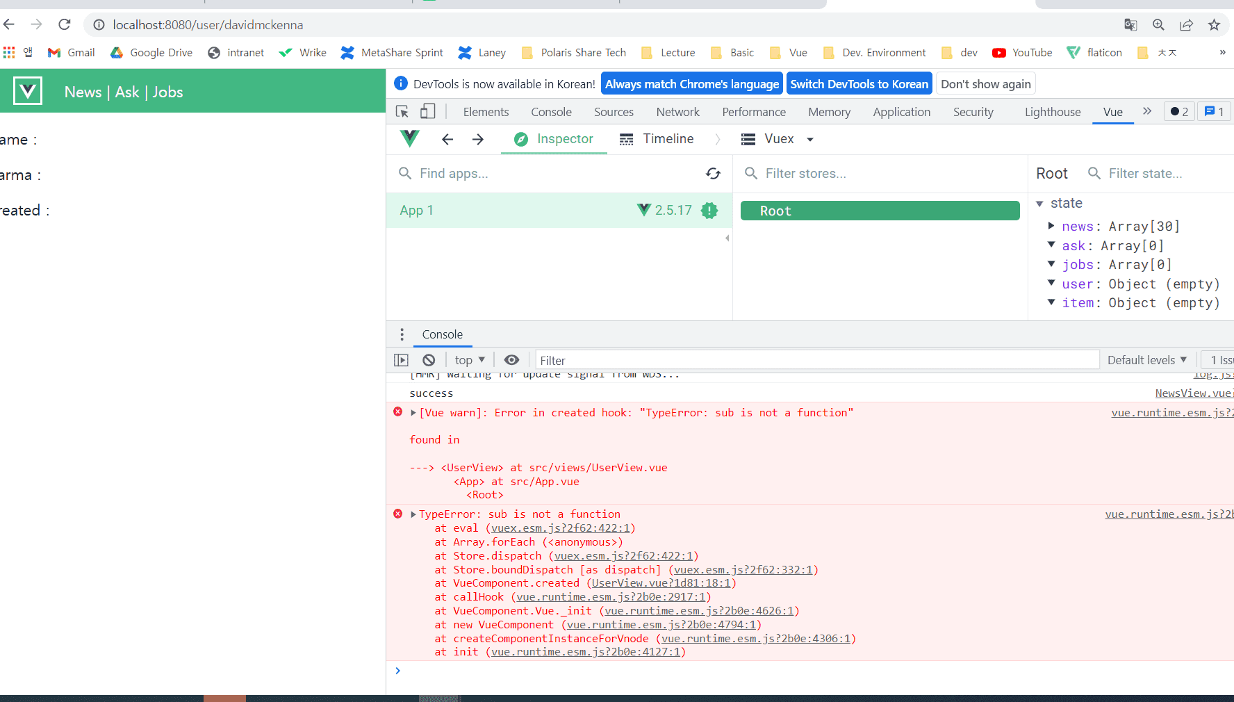 안녕하세요, 첨부해 주신 내용만으로는 제가 정확하게 답변 드리기가 어렵습니다. 에러 로그를 따라 아래 두 구간을 찾아보시면 될 것 같아요. UserView 파일과 store 파일