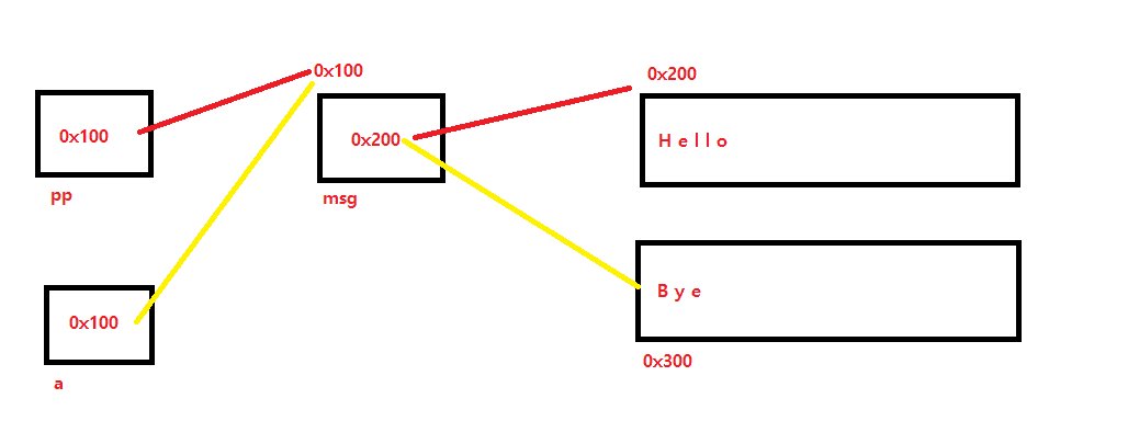 // 매개변수 a 는 pp(&msg)의 주소를 가짐.