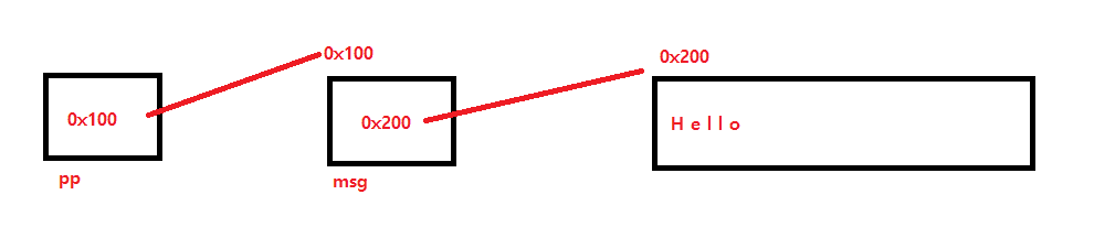 //*p로 pp 가 가지고있는 &msg주소의 값을 가져옴