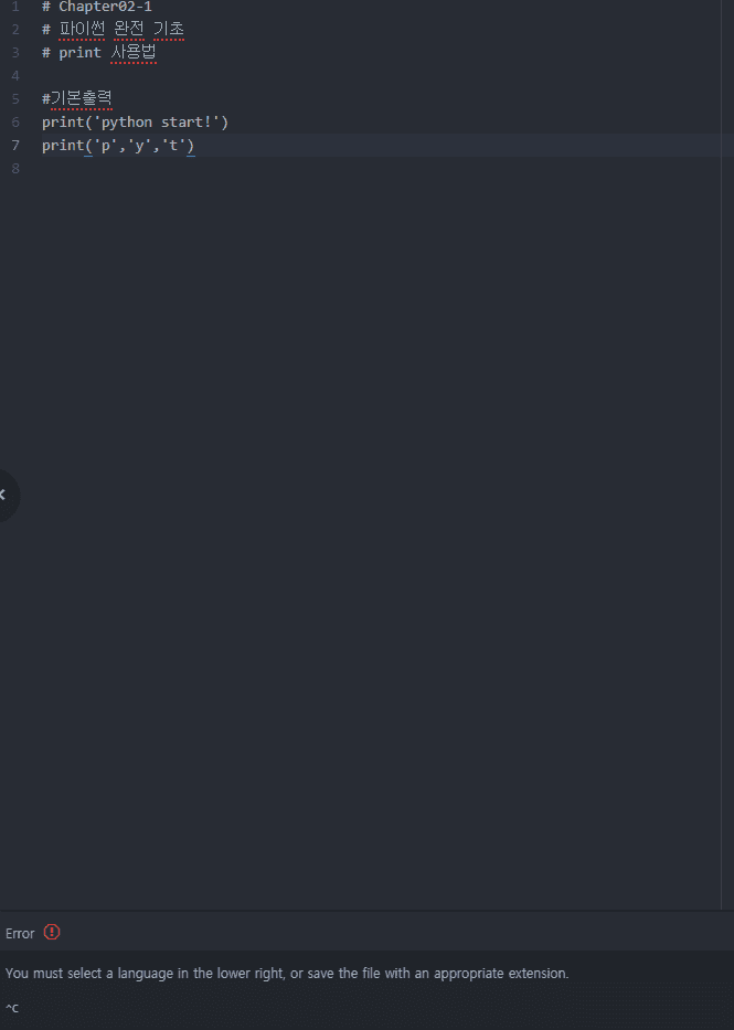 안녕하세요. 2-1강을 보고있는데 프린트를 쳤는데 제대로 출력이 되지않고 아래사진과 같이 에러가 떠서 문의드립니다. 이유가 뭔지 해결방법이 어떻게 되는지 알려주시길 부탁드리겠습니다. 감사합니다.