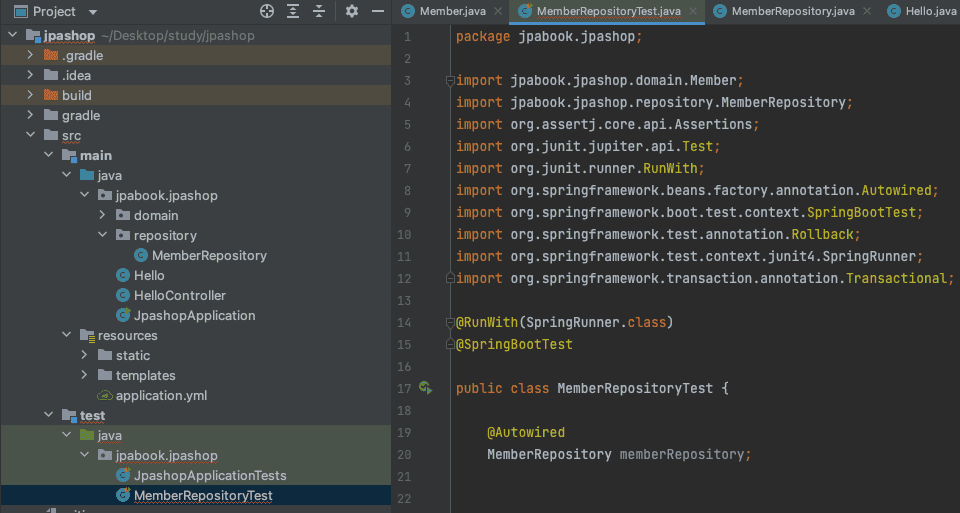 MemberRepositoryTest 쪽에 빨간 글씨로 오류가 나서 찾아보던 중