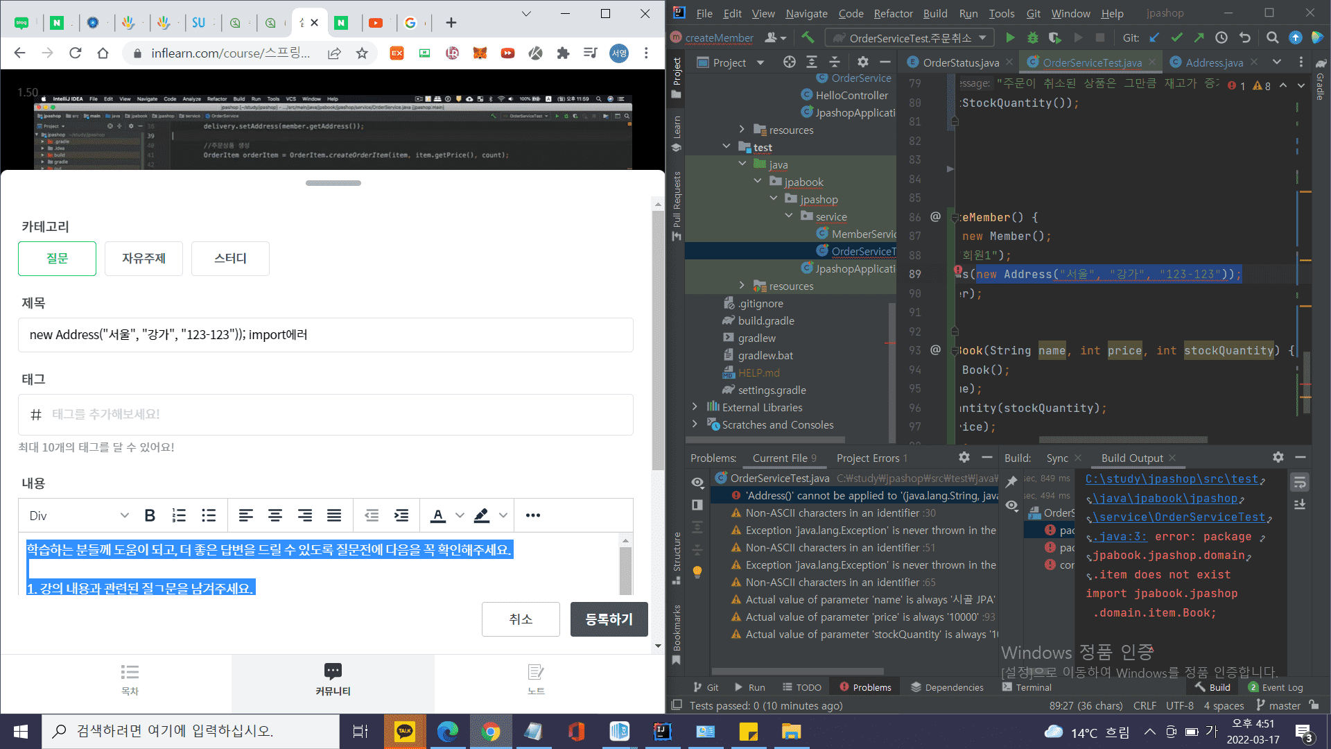 OrderServiceTest에서도 new Address부분이 에러가 뜹니다...