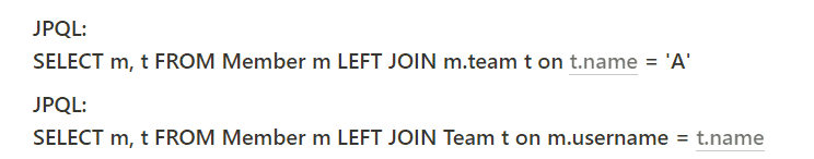 2.연관관계 없는 엔티티 외부 조인에서는 jsql을 Team t 으로썼잖아요