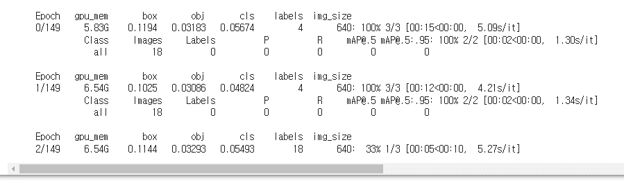 다음 그림과 같이 label의 갯수가 0으로 나오면서 학습이 진행되지 않습니다.