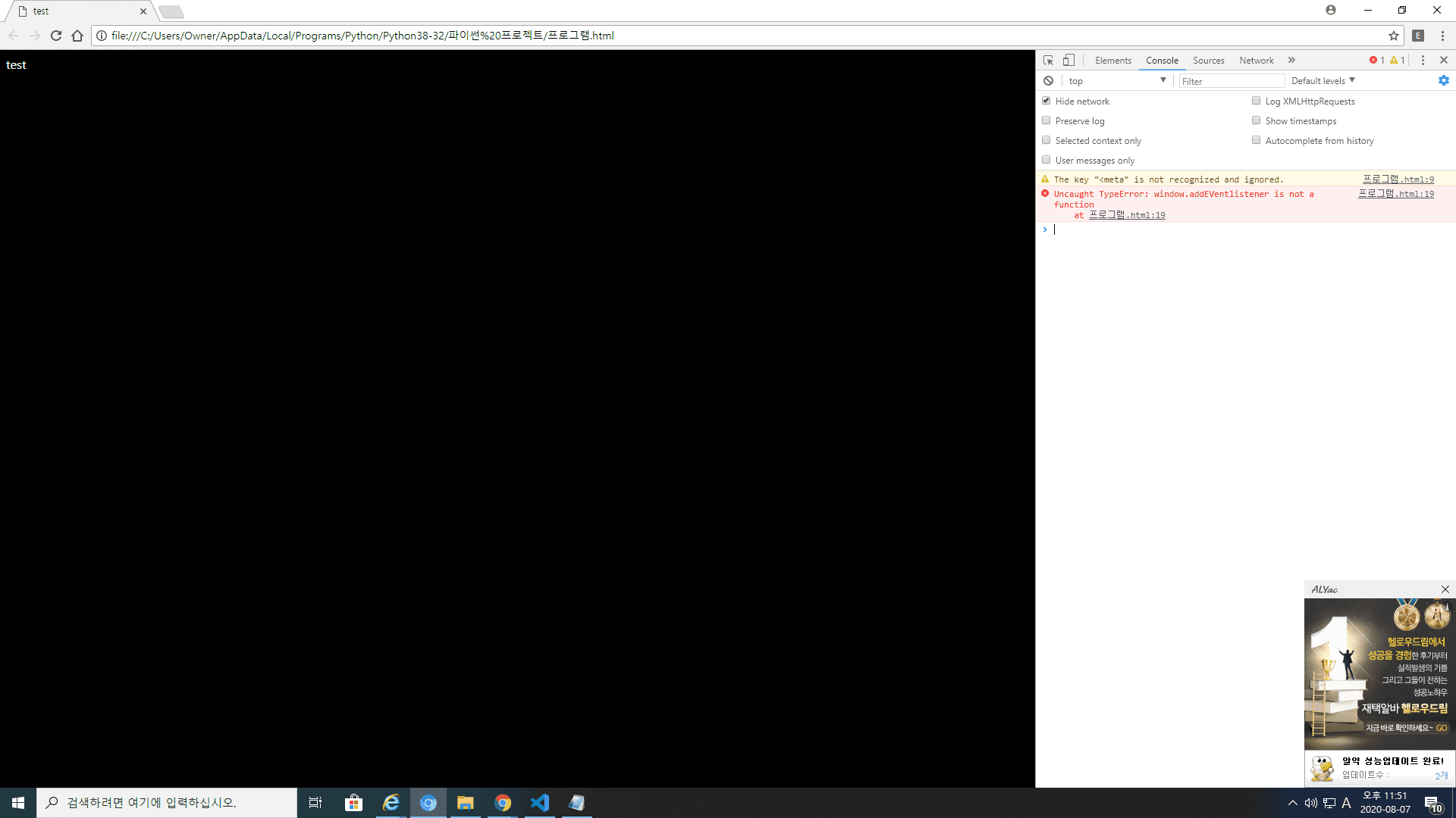 혹시 다른 브라우저는 에러가 발생하지 않나요?