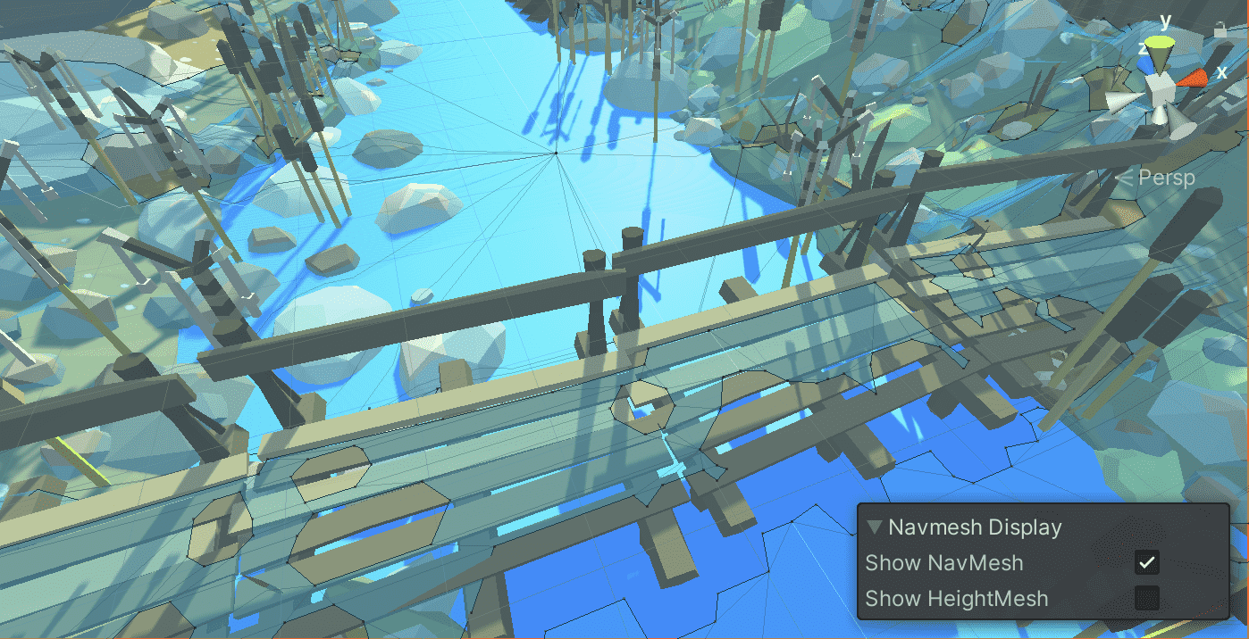 대부분은 원하던 대로 되지만 아래 스냅샷 같이 끊어진 다리같은 부분은 일부분이 못가는 구역으로 되어서 캐릭터가 이동 하지 못했습니다