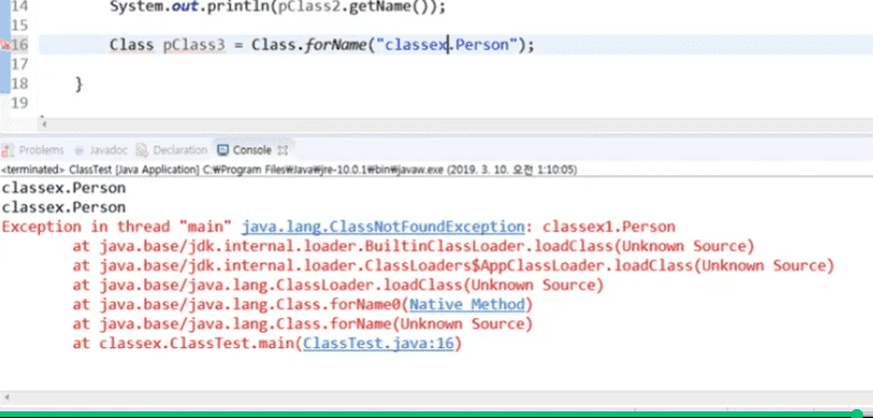 아.. 그러니까 forName안에 있는 문자를 에러내도 제 이클립스자체에서 에러코드를 콘솔창에 안띄워서 질문을 드린거예요.