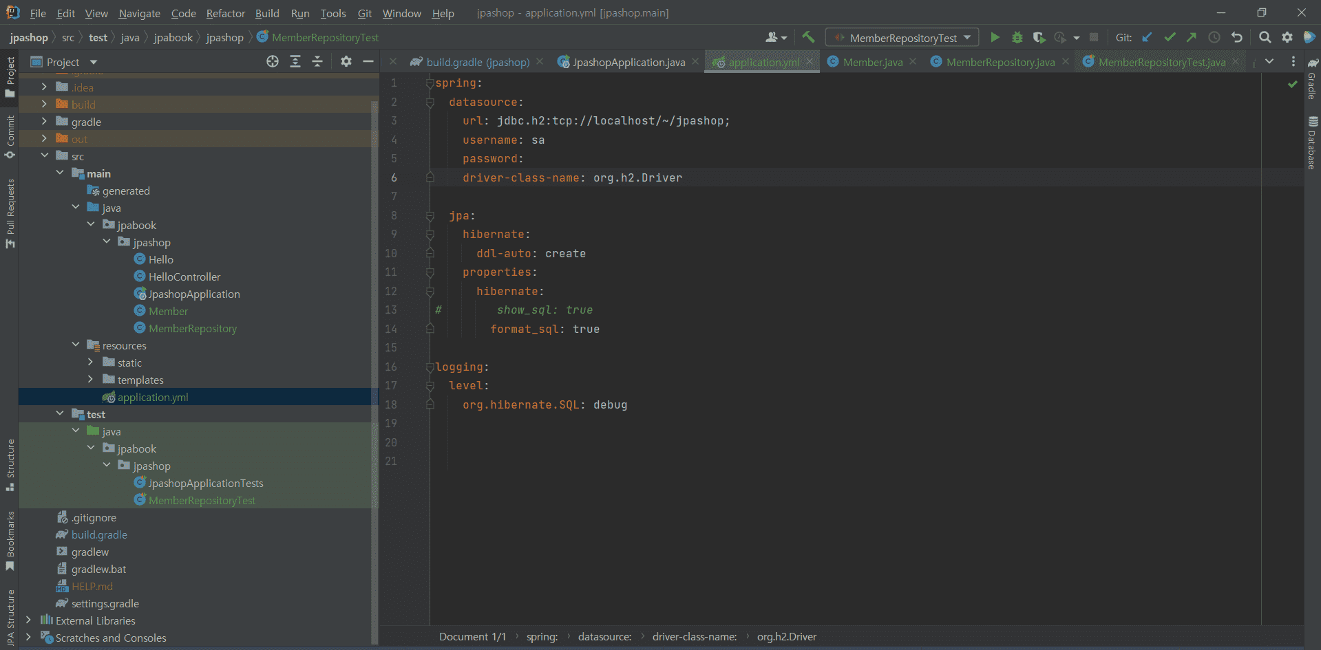 h2는 잘 실행되고 있고 application.yml은 다음과 같습니다.
