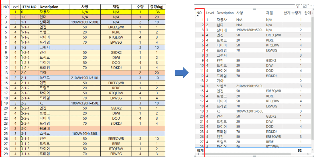 처음에는.. 레벨구조를 갖는 BOM(엑셀)을 파워 BI에 불러오고 원본과 동일하게 보여주기 위해 정렬을 아무리 해봐도 열이 뒤죽박죽 섞이길래..