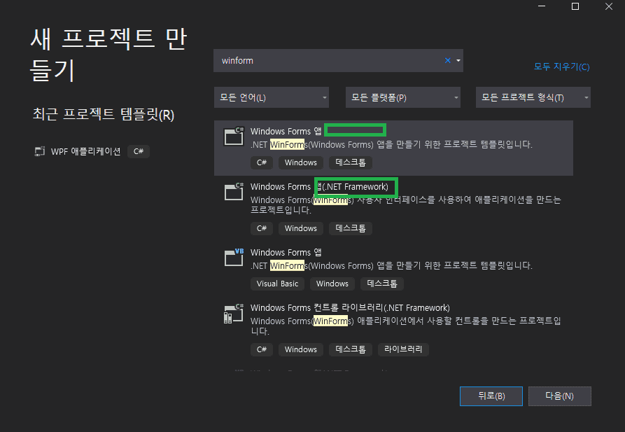 솔루션 생성시에도 .netFramework로 선택해주시면 되겠습니다.
