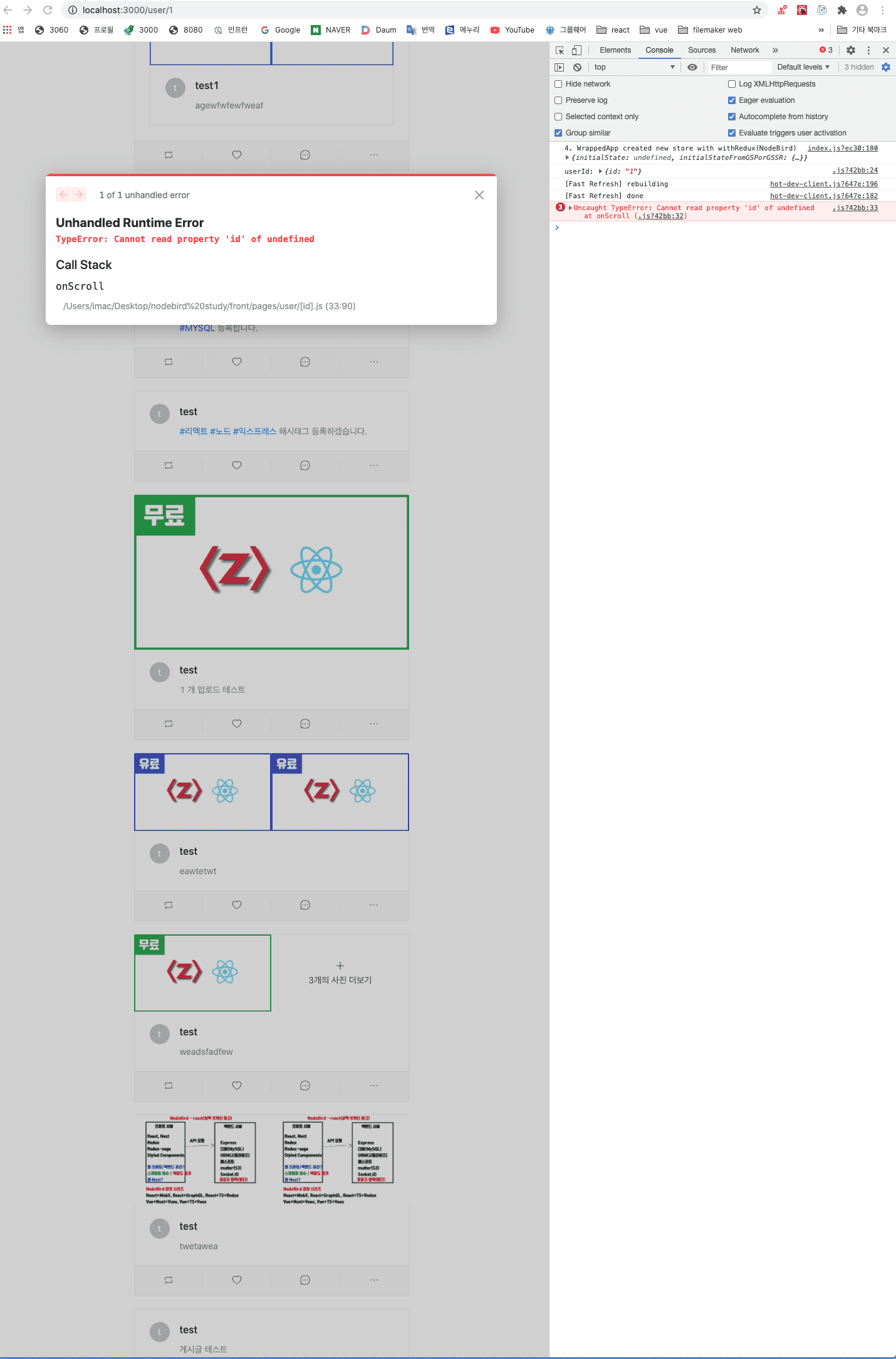 페이지 로딩은 정상적으로 되는데 스크롤시 에러가 발생합니다.