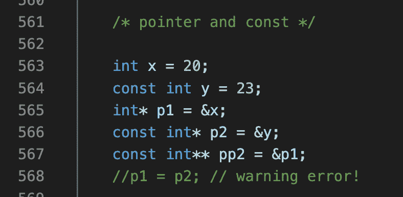 const int * p1 = &x;