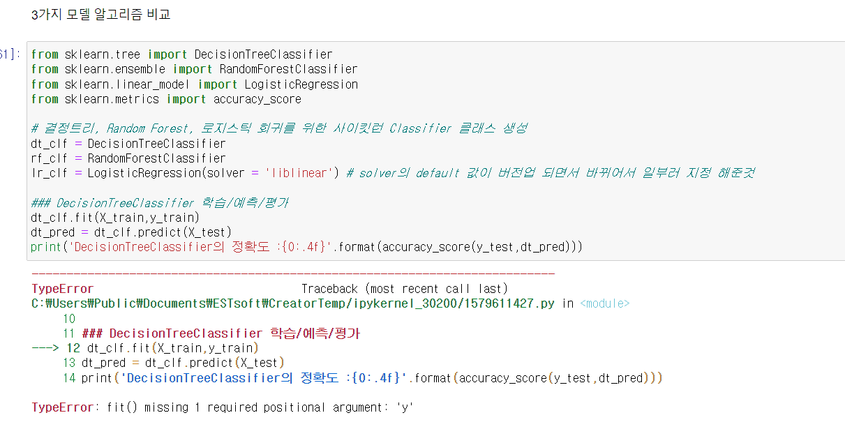 강사님과 똑같이 dt_clf를 사용 했는데 어떤 부분에서 오류가 난걸까요?