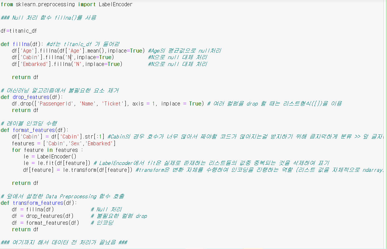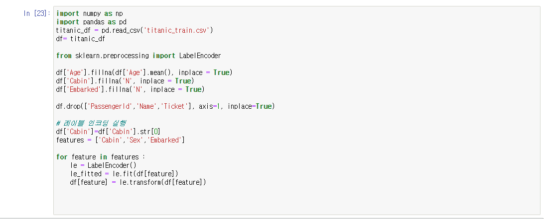 캡처 1의 # 레이블 인코딩 수행 부분에서
