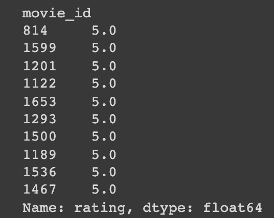 인기 제품 추천 방식 코드를 보고 따라쳤는데, 강사님이랑 결과(movie_id)가 다른데 왜 그런건가요?