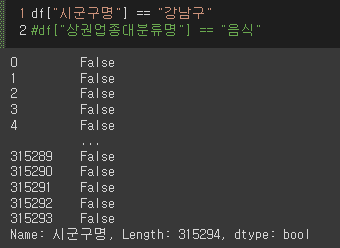 [9/15] 구별 음식점 분석으로 서브셋 만들기 - boolean Indexing 이해하기
