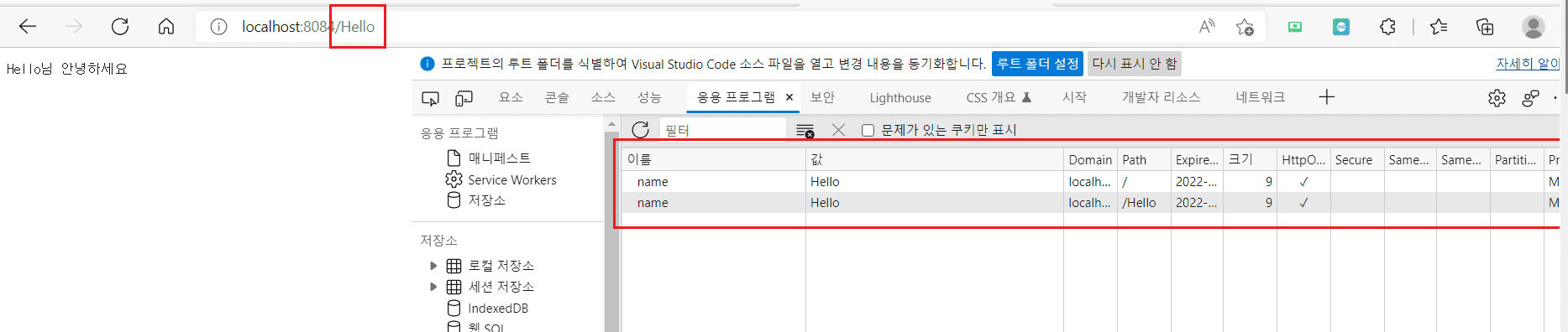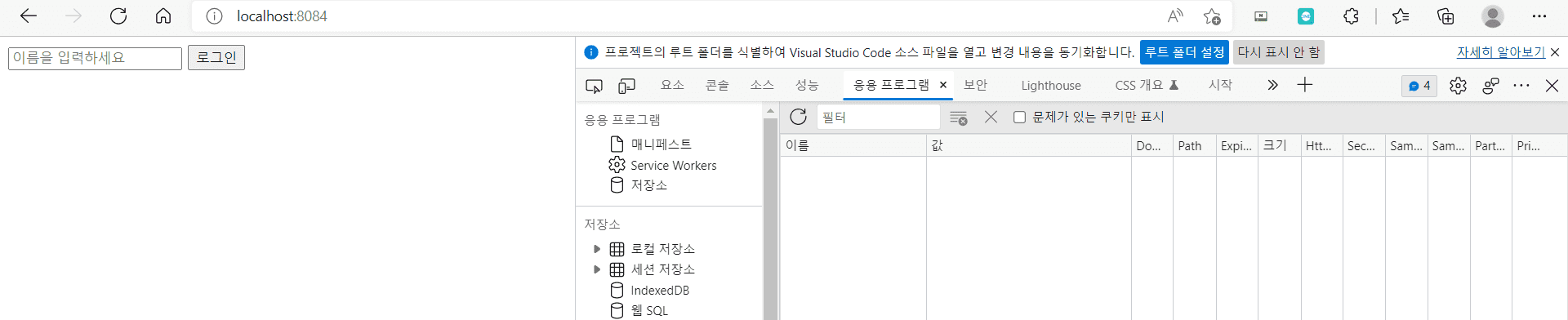 말씀해주신 네트워크 탭 쿠키도 확인해봤습니다