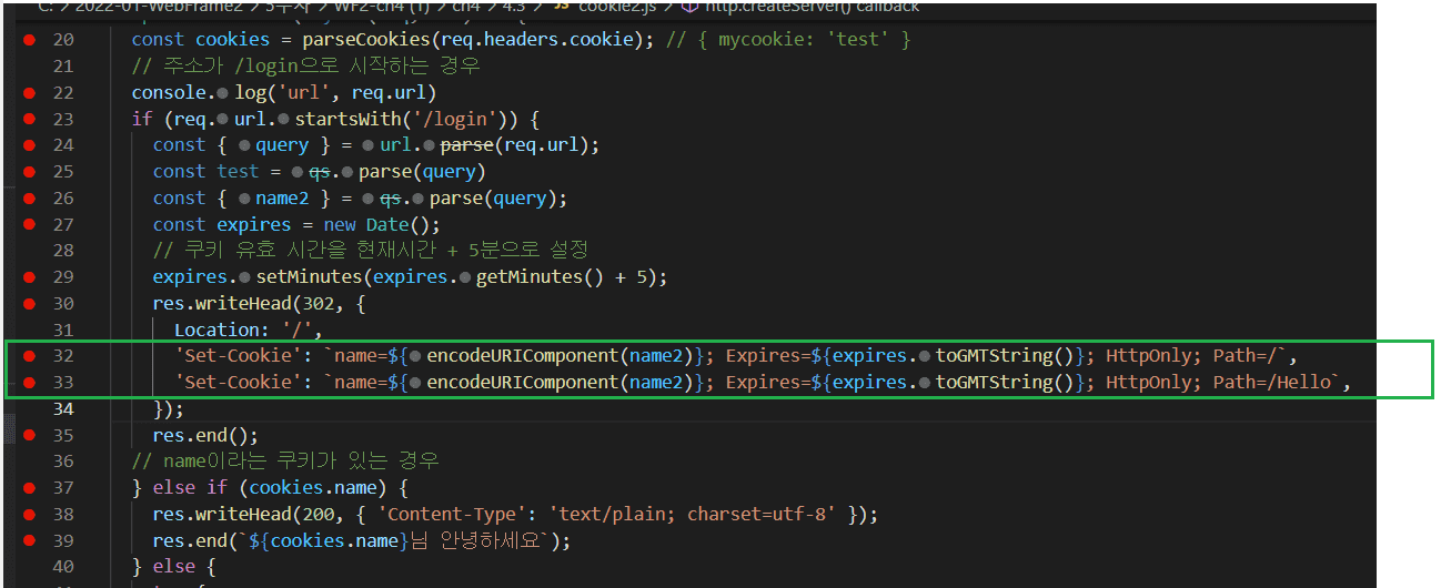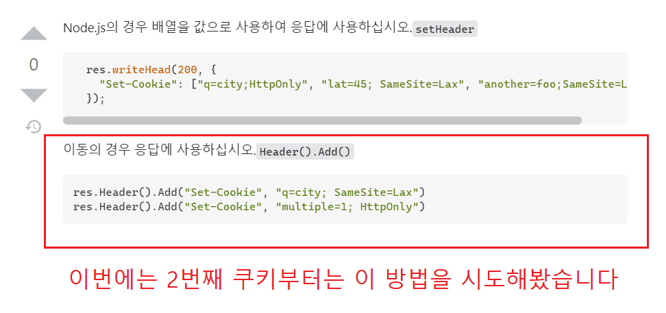 2번째 쿠키부터는 res.Hear().Add로 추가해봤습니다