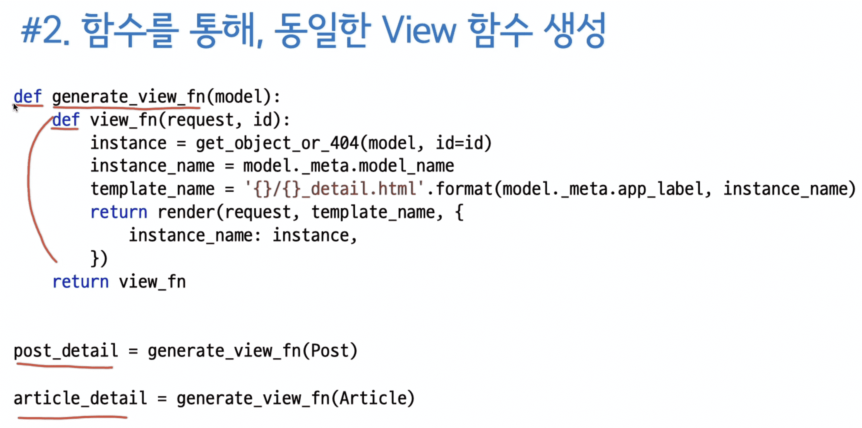 위 generate_view_fn 예시에서는 예시를 보다 간결하게 쓸려고 object 이름은 제외시켰습니다.