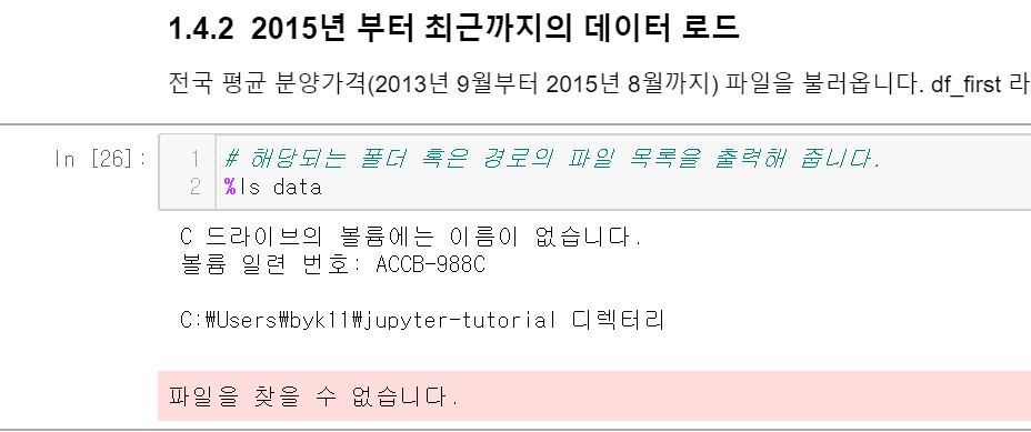 제가 %ls data 구문을 실행했을때, 아래 사진처럼 에러가 발생해서 어떻게 해결해야할지 문의드립니다. 혹시나해서 data폴더를 jupyter_tutorial폴더안에도 넣어보고 실행했는데도 에러가 발생합니다.