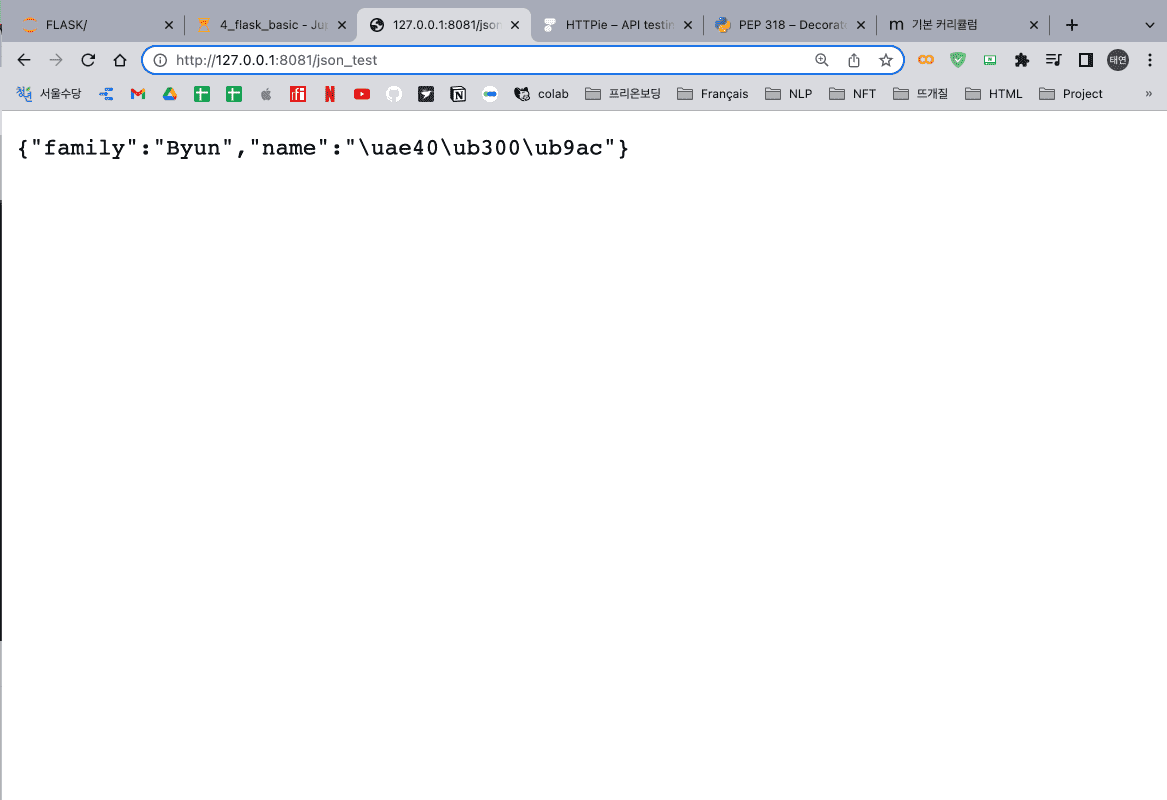 우선 jsonify 로 처리된 데이터가 실제로 전송이 될 때에는 인코딩 방식이 ASCII 방식으로 바뀌어서 전송이 될 것인데요. 한글과 같이 ASCII 방식에서 지원이 안되는 데이터는 \uae40 와 같이 ASCII 방식으로 해당 뎅이터를 변환해서 보내고요. 이를 받는 쪽에서는 \uae40 와 같은 데이터를 본래의 인코딩(한글)으로 변환해서 처리합니다. 그러다보니, 통신하는데에는 문제가 없었다고 보시면 좋을 것 같습니다.