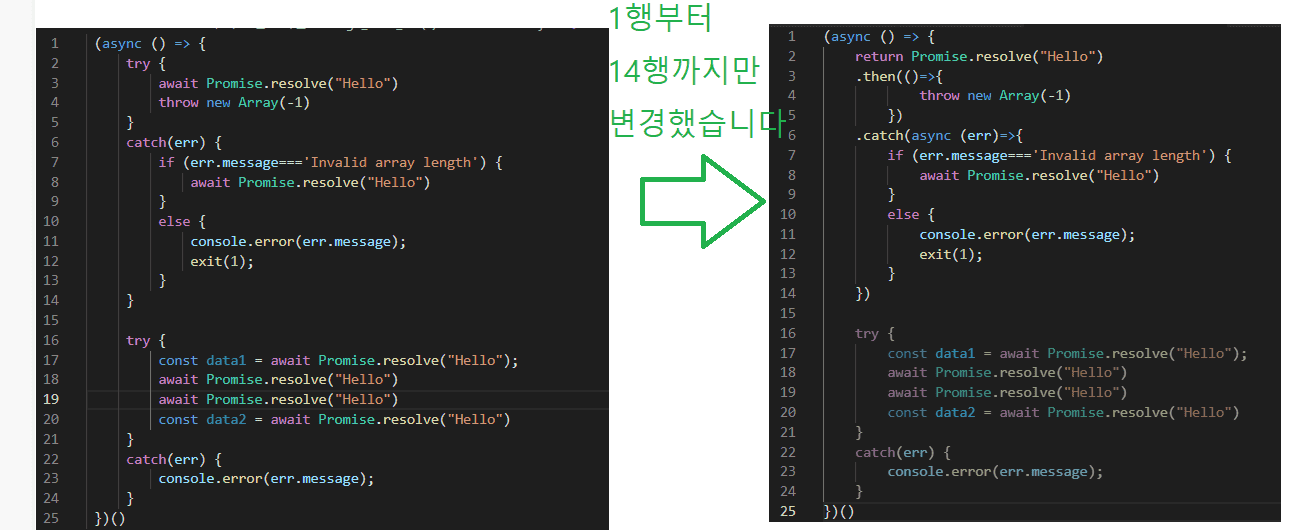 1번째 변경 코드는 1행부터 14행까지만 수정했습니다
