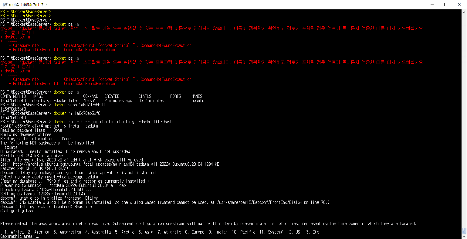 설치시 위처럼 선택을 해야 하는경우 Dockfile 에 어떻게