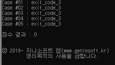 문제를 풀이하고 계속 채점프로그램을 돌리는데, 다음과 같은 에러가 발생합니다.
