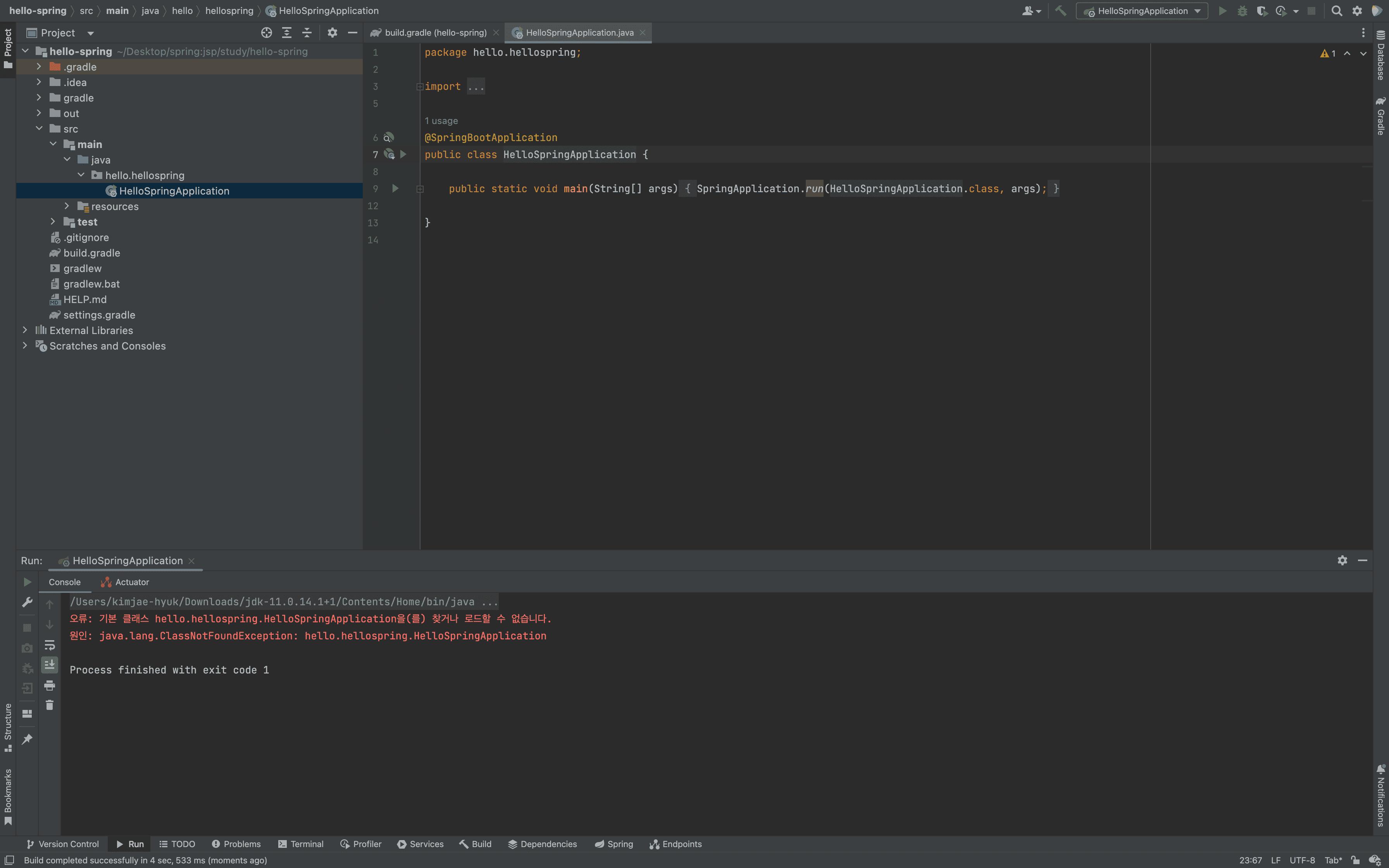 -강의 보면서 따라하다가 기존 원래 있던 클래스를 실행했는데 저런 오류뜨면서 안됩니다.