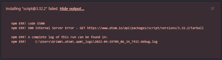 autocomplete와 script 설치를 하는 중, npm ERR! code E500 오류가 뜨고 있습니다.
