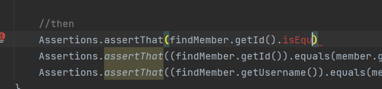 getId() 이후 괄호를 닫고 isEqualTo 메서드를 사용해보세요.