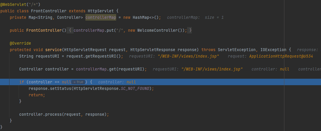 그런데 프론트 컨트롤러의 URL 패턴을 "/*"로 하니까 컨트롤러의 작업을 끝내고 포워딩할 때 주소가 "/WEB-INF/views/~~.jsp"니까 프론트 컨트롤러를 다시 한번 들어오게 되더라구요.