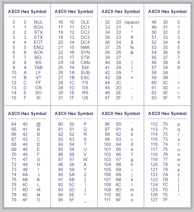 아래 링크를 보시면 문자 5가 53번으로 매핑되어 있는 것을 보실 수 있습니다.