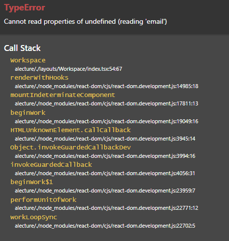 데이터가 로딩중인 경우는 undefined라서 undefined.email을 하셔서 에러가 발생한 겁니다. 데이터가 로딩 된 뒤에 표시하도록 코드를 수정하시면 됩니다.