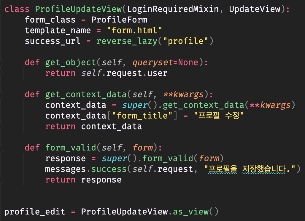 profile_edit 부분을 CBV로 구현해봤는데