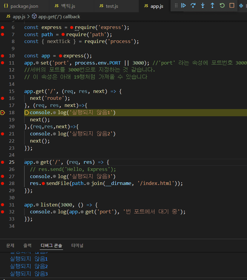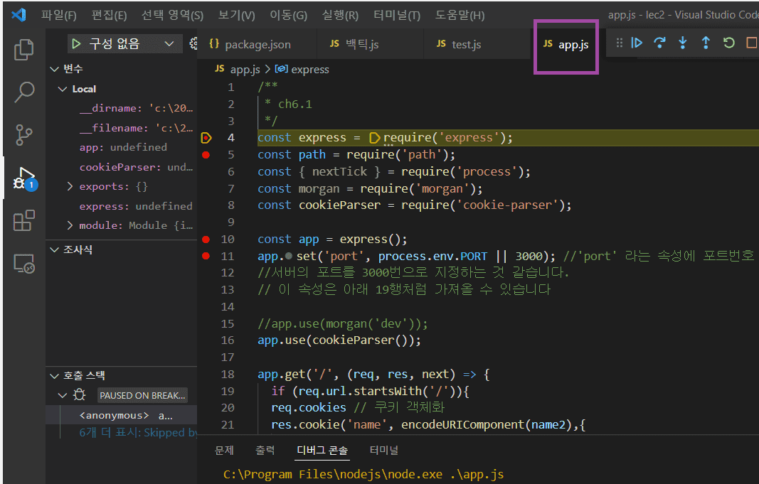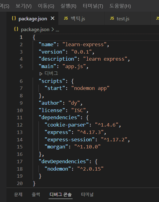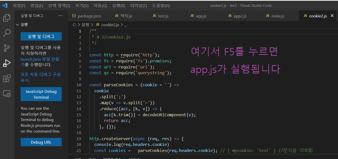 비쥬얼스튜디오코드에서 무조건 app.js를 실행시켜주더라구요