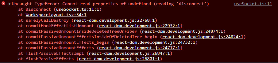 기존 에는 로그아웃을 하면 로그인 페이지로 바로 이동을 했는데 useSocket 훅스를 추가하고 나서 로그아웃을 하면 위처럼 useSocket에러가 생기네요 ㅠㅠ 뭐가 잘못된건지 잘 모르겠어서 질문남깁니다!