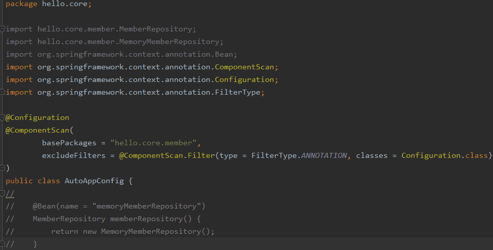 ApplicationContext 생성할때 매개변수로 AutoAppconfig.class 대신에 Appconfig.class를 넣으면 문제없이 들어가는데 AutoAppconfig.class로 하면 못가져오네요..