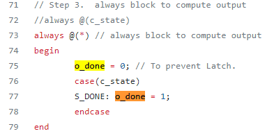 o_idle과 o_running은 o_done과 달리 reg가 없이 정의되도 되는 이유를 알고 싶습니다.