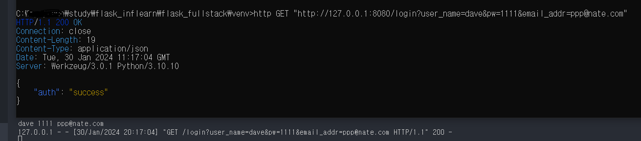 http GET "http://127.0.0.1:8080/login?user_name=dave&pw=1111&email_addr=ppp@nate.com"