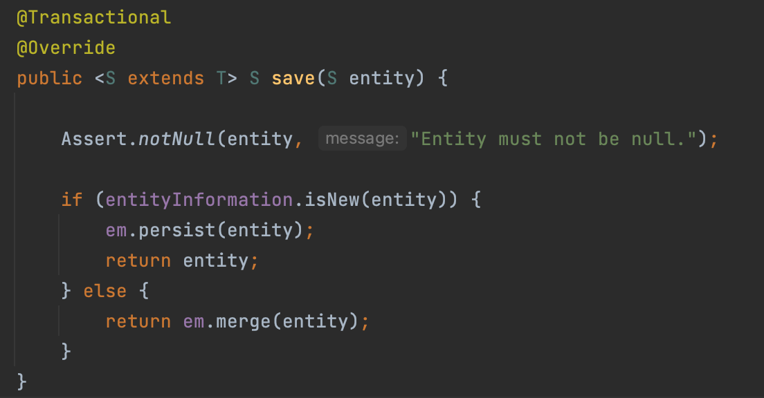 JPARepository의 save method는 아래와 같았습니다.