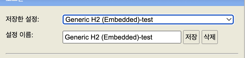 "설정 이름"에 Generic H2 (Server) 작성하고 우측 저장 버튼 누르면 되실거에요.