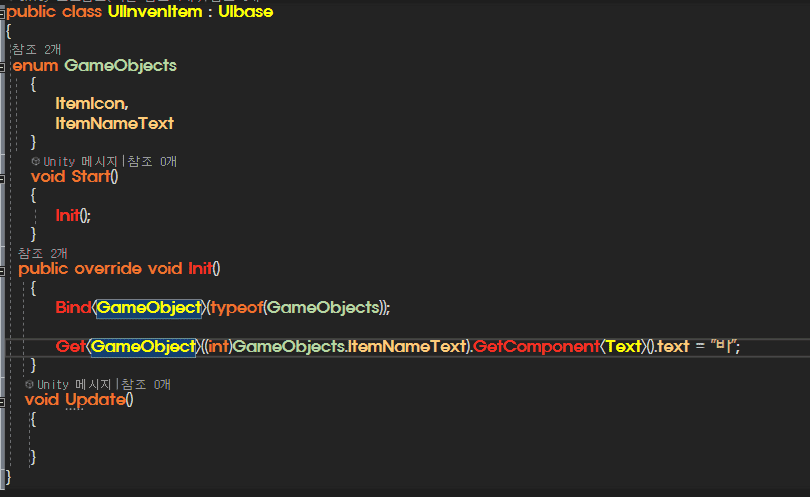 강의 내에 UI INVEN ITEM의 이름을 변경하기 위한 CS 파일인데 이걸 실행하면