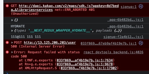 프론트 회원가입 페이지에서 가입하기 버튼 누를 시 이러한 에러가 발생합니다.