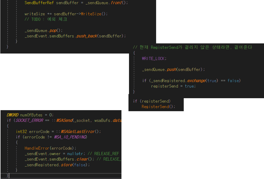 }ProcessSend()의 문제가 아니라 여러 스레드를 통해 Send() -> RegisterSend()를 하는 과정에서 발생하는 문제입니다.