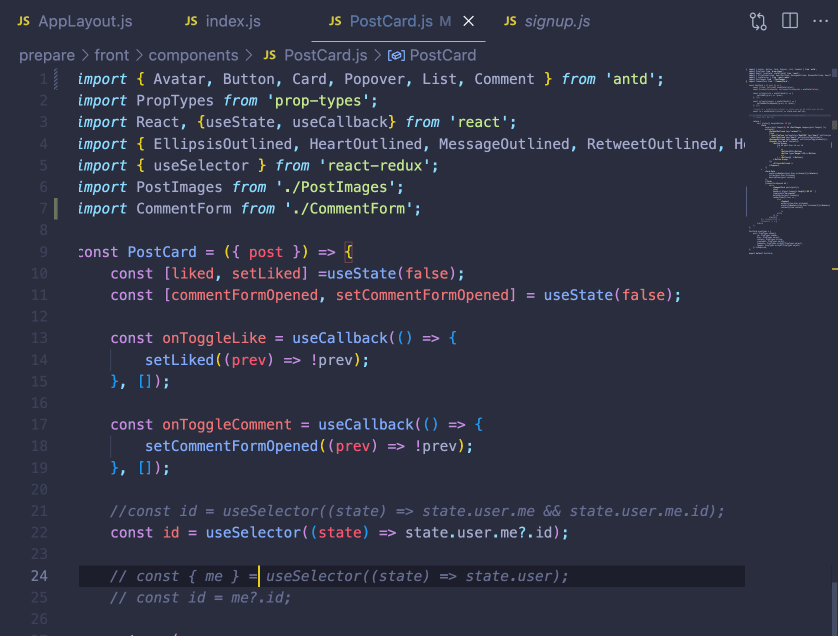 PostCard.js에서는 id값이 읽히는데