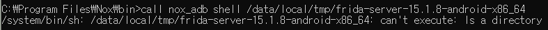 C: ₩Program Files₩Nox₩bin> call nox_adb shell /deta/local/tmp/frida-server-15.1.8-ardroid-x86_64