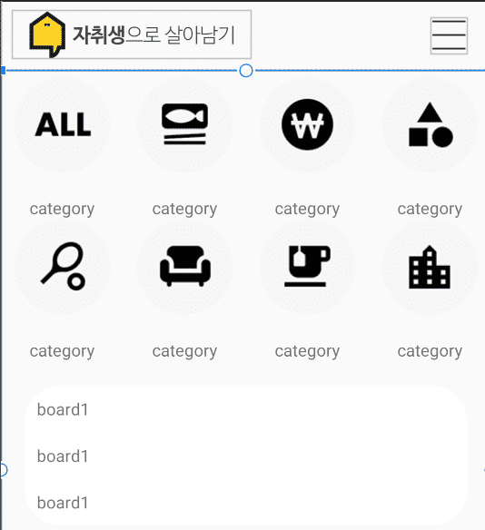 안녕하세요. 우선 위의 항목은 레이아웃을 변경하셔서 클릭할 때 원하시는 기능을 붙여주시면 됩니다.