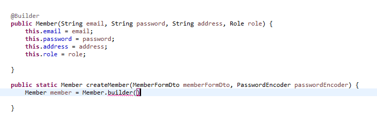 createmember라는메서드를 만들어서 사용하려는데 메서드안에서는 빌더를못쓰는걸까요?