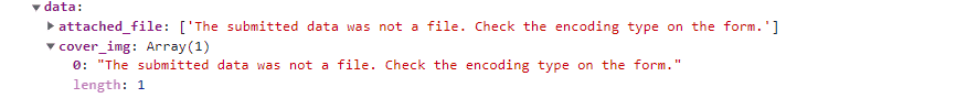 attached_file 필드에 대해서 "The submitted data was not a file. Check the encoding type on the form." 에러 메세지는 클라이언트 단에서 서버로의 요청이 정상적인 파일 업로드 요청이 아닌 듯 합니다.